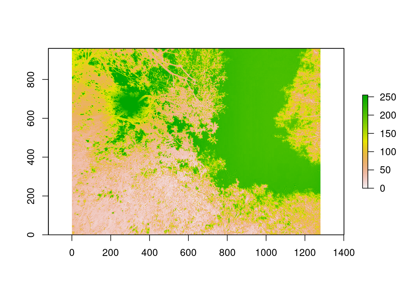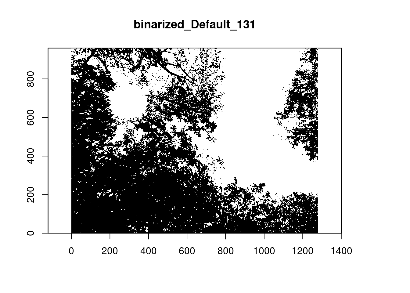 - Retornar os atributos do dossel requer uma classificação dos pixels (os valores 1 no raster binário)